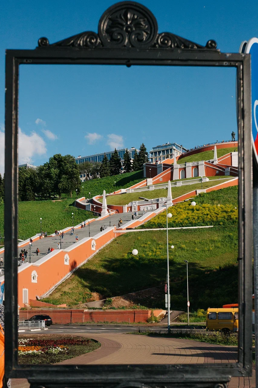 Cầu thang Chkalov nối liền bến tàu Upper Volga và Lower Volga với 560 bậc thang, mang đến khung cảnh tuyệt đẹp nhìn ra hợp lưu của Volga và Oka.Phố Bolshaya Pokrovskaya là một trong những con phố đi bộ chính của thành phố với các nhà hát, bảo tàng và nhiều tòa nhà cổ kính.