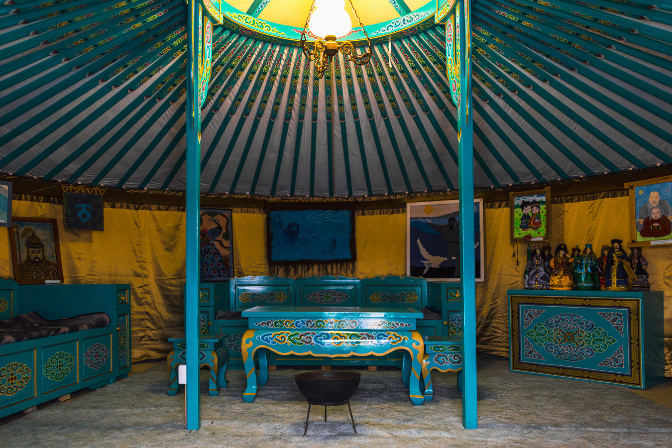 “Phía bên trái của lều yurt là khu vực dành cho phụ nữ, nơi để đồ dùng nhà bếp và dụng cụ. Phía bên phải dành cho nam giới, có các hòm chạm khắc, đồ dùng liên quan đến ngựa và giày dép,“ — bà Elena Strekalina, phó giám đốc bảo tàng kiến trúc-dân tộc học “Taltsy”, giải thích.